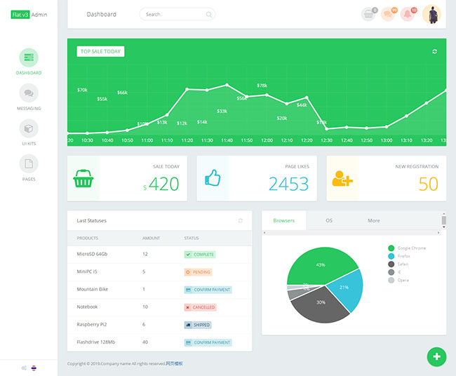 管理面板扁平响应式Web模板