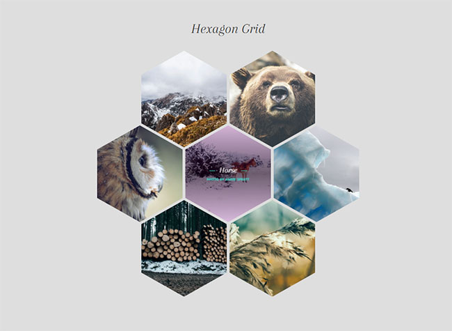 CSS3六边形布局鼠标遮罩显示是一款将图片绘制成六边形,然后图片之间互相拼接起来,当鼠标滑过图片时,会自动出现说明性的文字。