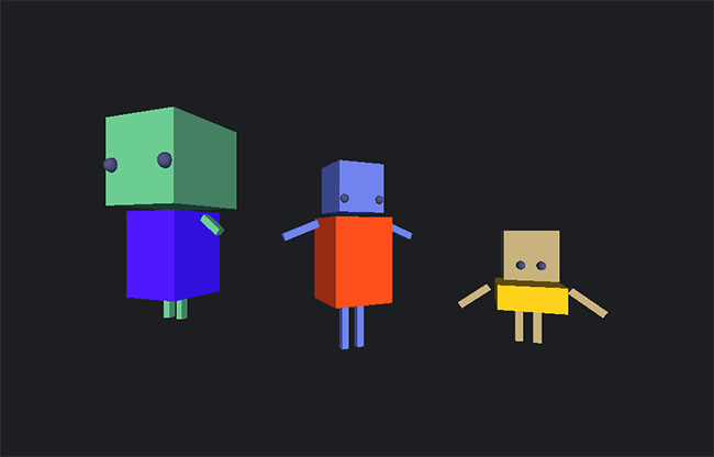 可变颜色形状的积木小人H5特效是一款三个积木小人,可以不断按F5刷新,每次刷新都是形态各异、颜色各异的积木小人。