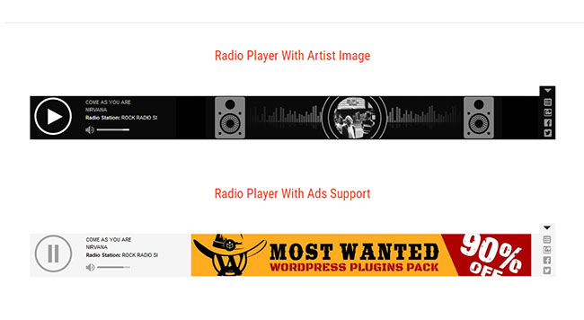 2款带皮肤的HTML5广播音乐播放器是一款网页全宽播放器,可用于响应式网站,兼容IOS和Android操作系统。