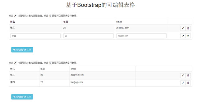 Bootstrap可编辑表格的网页特效是一款可以对表格行进行添加,文字编辑、删除等,操作过程流畅。