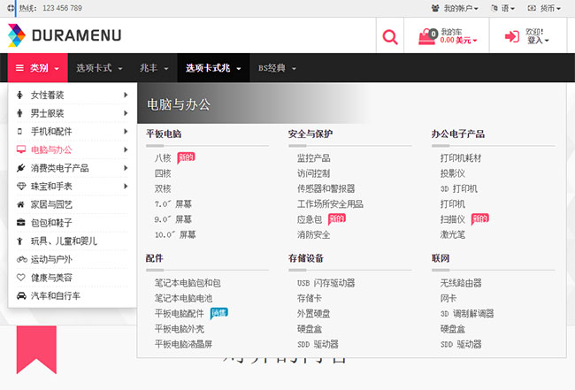 jQuery适合电商多级导航菜单代码是一款适合电商平台的多级导航菜单,分类细致,简洁干净。