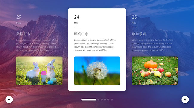jQuery响应式图文卡片滑块特效