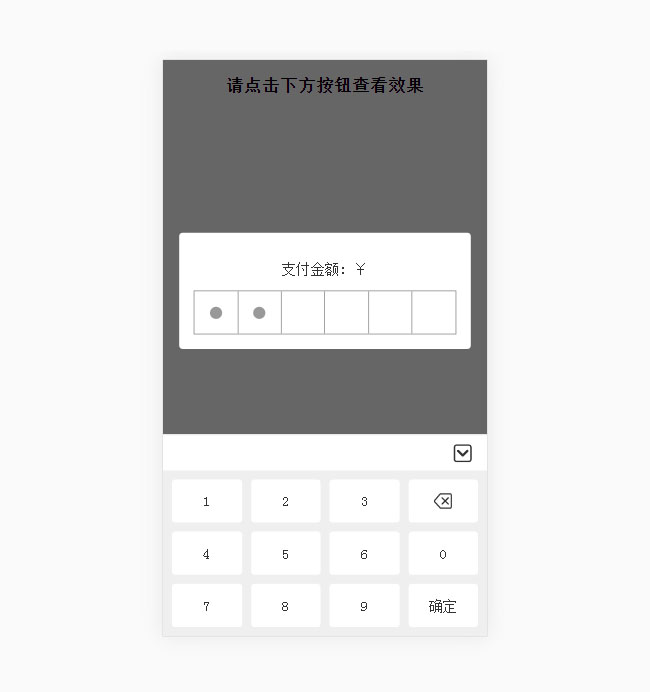 jQuery手机弹窗输入支付密码代码是一款点击支付按钮,遮罩弹窗显示数字键盘输入支付密码功能效果。